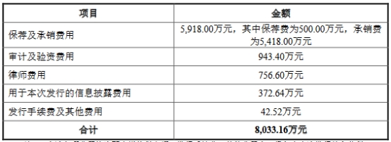 本次公司公开发行新股的发行费用为8,033.16万元,其中长江证券承销保荐有限公司获得保荐及承销费用5,918.00万元。