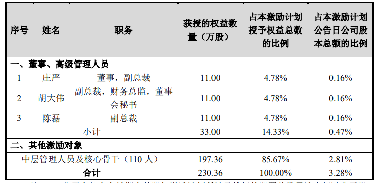 在恩威医药上市一周年左右的2023年9月,推出了“2023年限制性股票激励计划”,向113个激励对象授予权益总计不超过230.36万股,约占彼时总股本3.28%,授予价格每股21.01元。