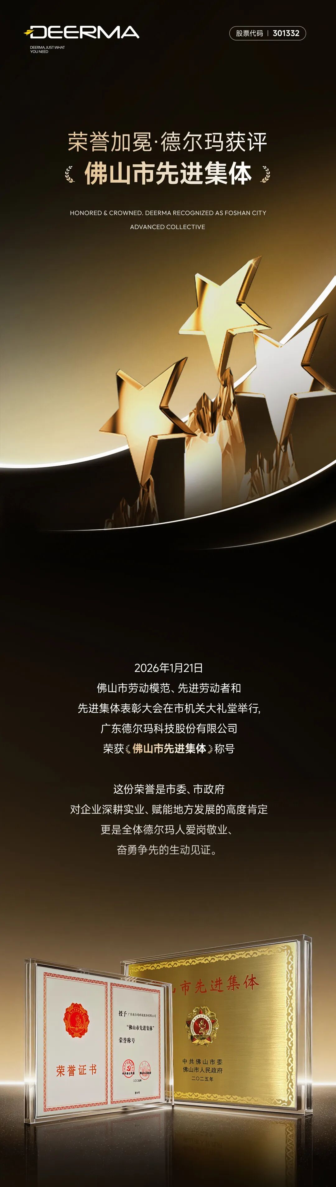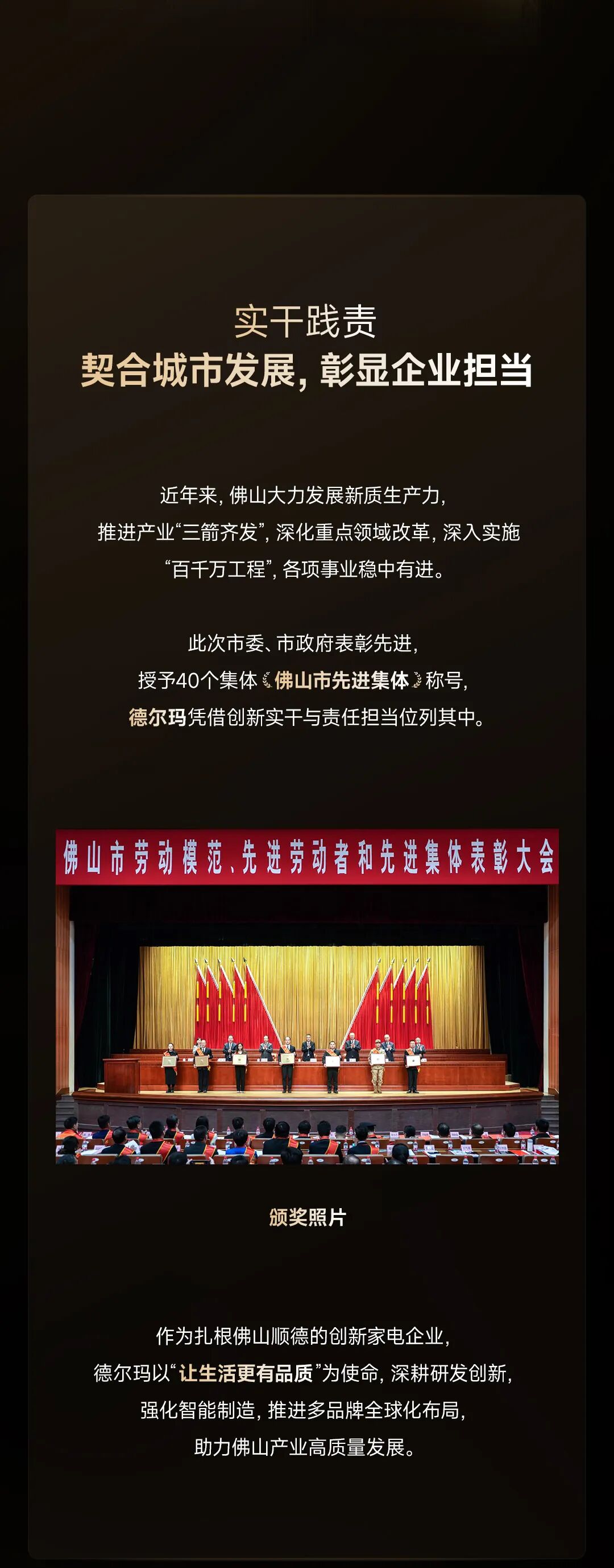 践行“让生活更有品质”,德尔玛荣获“佛山市先进集体”称号