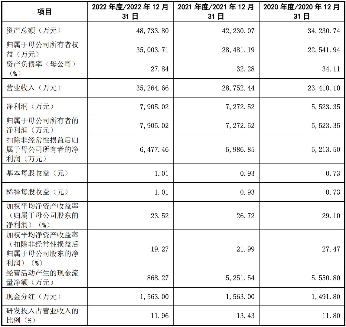 2020年、2021年和2022年,亚华电子的营收分别为2.34亿元、2.88亿元和3.53亿元;净利润分别为5523.35万元、7272.52万元和7905.02万元,扣非后净利润分别为5213.50万元、5986.85万元和6477.46万元。