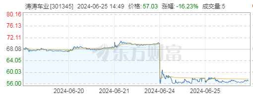 6月25日,涛涛车业跌幅有所收窄,最新价格约57元/股。
