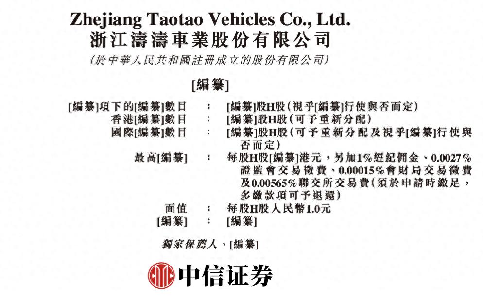 瑞财经吴文婷近日,浙江 涛涛车业 股份有限公司(以下简称“ 涛涛车业 ”)在港交所递交招股书,独家保荐人为 中信证券 。