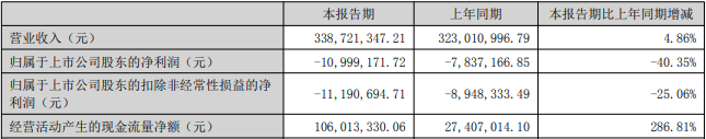 蓝箭电子(301348.SZ)日前发布2025年半年度报告。今年上半年,公司实现营业收入3.39亿元,同比增长4.86%;归属于上市公司股东的净利润-1099.92万元,上年同期为-783.72万元;归属于上市公司股东的扣除非经常性损益的净利润-1119.07万元,上年同期为-894.83万元;经营活动产生的现金流量净额1.06亿元,同比增长286.81%。