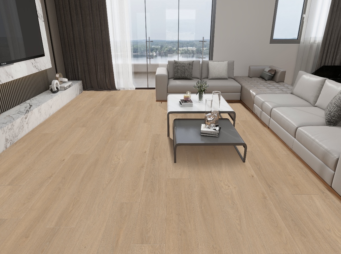 该款RPET复合地板精选天然碳酸钙粉与再生PET(聚对苯二甲酸乙二酯)为核心原料,通过融合再生PET材料,有效减轻了地球的废弃物负担,并从源头上削减了对新料的需求,进而缩减能源消耗和温室气体排放,让物质得以不断循环,实现资源的循环再利用;同时,产品在健康、耐用与美观等方面做了全面升级,实现了从环保到性能的质的飞跃。材质上,选用的PET材料是由对苯二甲酸和乙二醇经缩聚而成的一种聚合物,无机材料的填充增强,使其能在120℃的高温下长期使用,分解温度更是高达250℃以上,且分解时无有毒有害气体释放,达到食品级和医疗级安全标准。耐光稳定性优异,在阳光长期照射下,依然保持无毒无害的纯净本质。应用性上,做到了耐水性、耐磨耐用性、热尺寸稳定性、抗弹性形变能力四大升级。美观性上,RealPlank技术和3D打印工艺使RPET地板呈现出天然逼真的图案与纹理,让每块地板都展现出优质的木质韵味。
