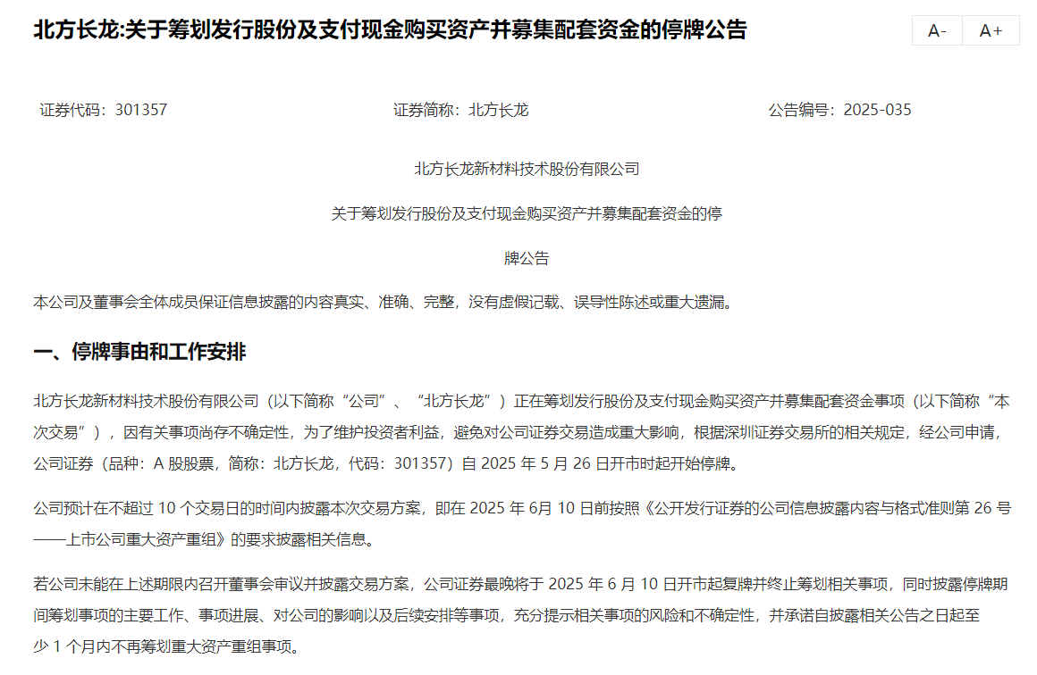 5月26日,北方长龙发布公告称,公司拟通过发行A股股票及支付现金的方式购买河南众晟复合材料有限公司(简称“河南众晟”)控股权,并同步募集配套资金。