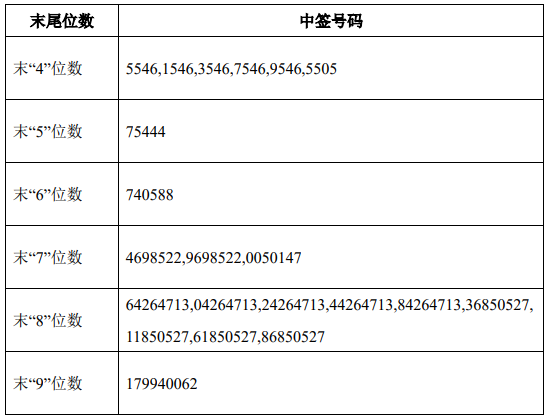 永顺泰中签号出炉中签号码共有225779个