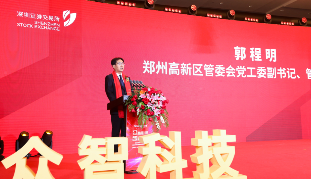 郭程明在致辞中表示,众智科技成功上市为郑州高新区中小科技企业发展树立了标杆,期待众智科技以上市为契机,进一步深化市场拓展、扩大市场空间,打造企业高质量发展的核心竞争力,以优异业绩回报社会和广大投资者。
