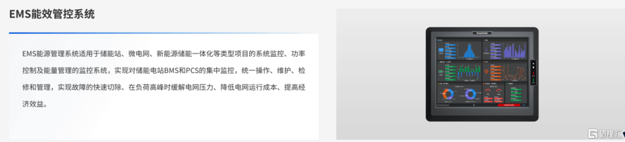 EMS能源管理系统则适用于储能站、微电网、新能源储能一体化等类型项目的系统监控、功率控制及能量管理的监控系统,实现对储能电站BMS和PCS的集中监控,统一操作、维护、检修和管理,实现故障的快速切除、在负荷高峰时缓解电网压力、降低电网运行成本、提高经济效益。