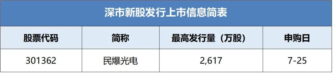 2023年7月17日,深圳民爆光电股份有限公司披露招股书,拟于近期在深市发行新股并上市。
