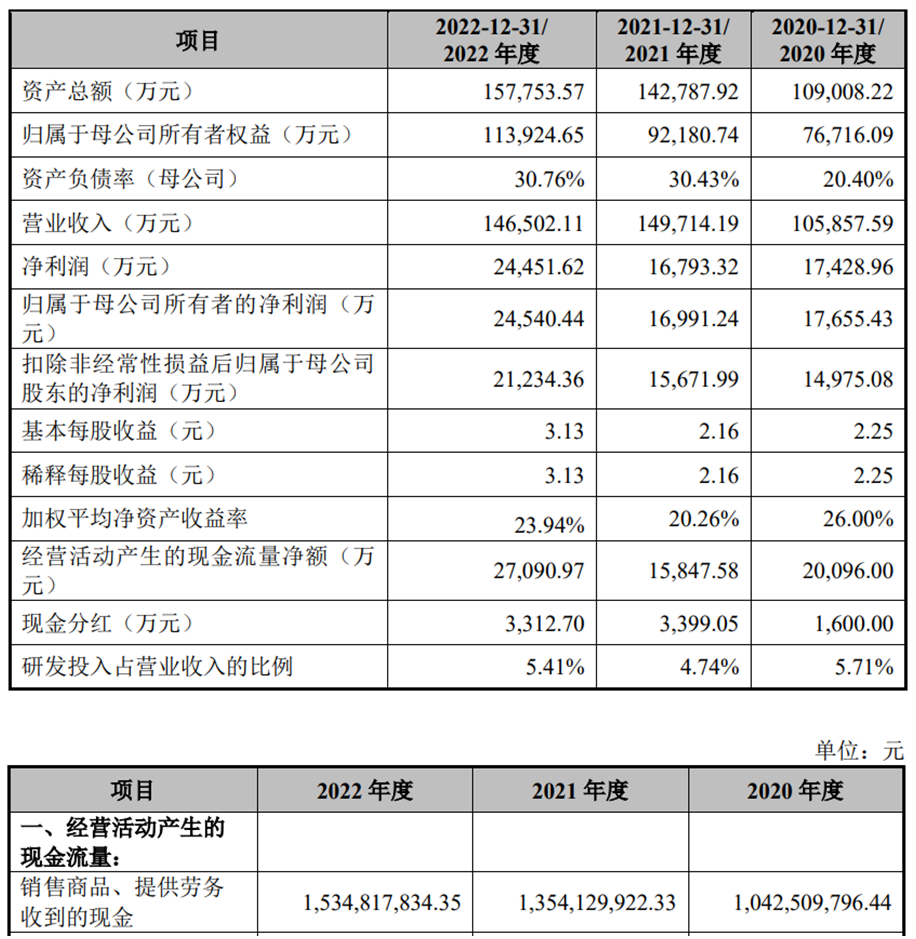 上述同期,公司销售商品、提供劳务收到的现金分别为104,250.98万元、135,412.99万元和153,481.78万元;经营活动产生的现金流量净额分别为20,096.00万元、15,847.58万元和27,090.97万元。