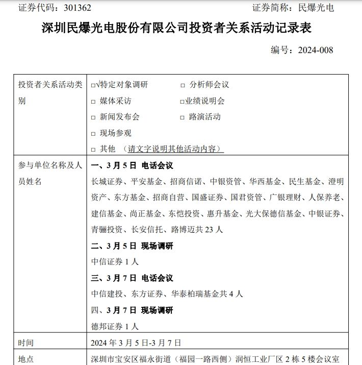 深圳民爆光电股份有限公司(证券代码:301362 证券简称:民爆光电)3月7日发布投资者关系活动记录表,公司于3月5日和7日分别接受信达长城证券、平安基金、招商信诺等多家机构调研。调研中,民爆光电称,目前公司已取得全球主要国家/地区的市场准入许可,产品已通过美国UL和FCC认证、澳大利亚SAA和C-TICK认证、欧盟CE认证、德国TUV认证、日本PSE认证和CB等相关国际认证,且通过了各销售地的安全检测,公司产品销往海外不存在障碍。
