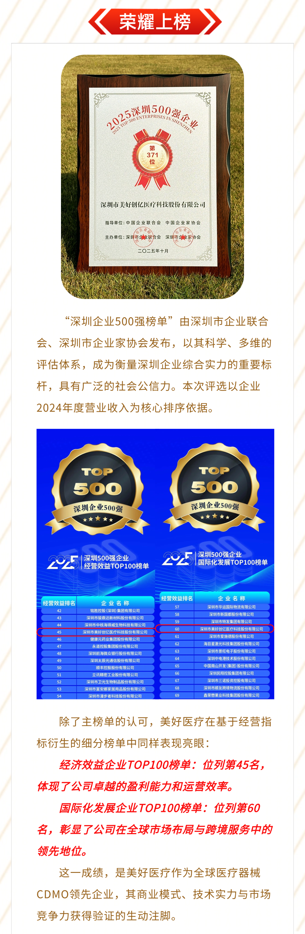 再登榜!美好医疗荣列2025深圳企业500强,彰显行业标杆力量!