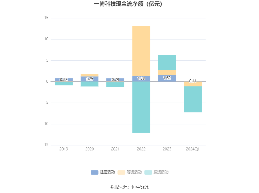 2024年第一季度,公司经营活动现金流净额为1121.61万元,同比下降55.74%;筹资活动现金流净额-1.12亿元,同比减少9722.68万元;投资活动现金流净额-6.14亿元,上年同期为2352.16万元。