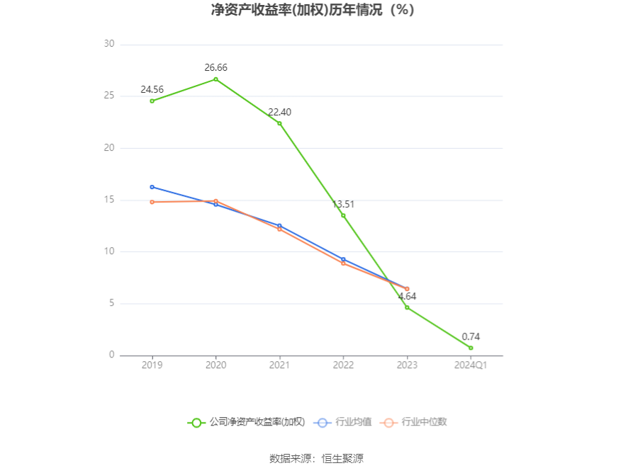 数据显示,2024年第一季度公司加权平均净资产收益率为0.74%,较上年同期下降0.33个百分点;公司2024年第一季度投入资本回报率为0.62%,较上年同期下降0.38个百分点。