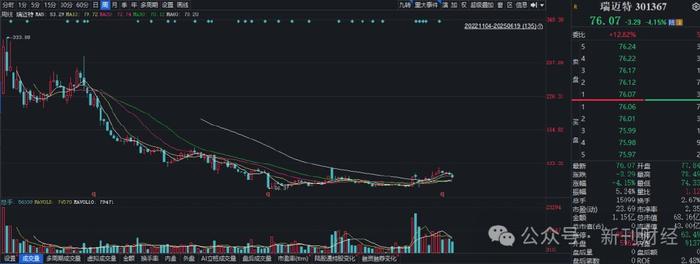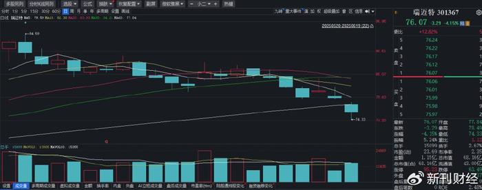 这一公告发布后,瑞迈特股价迅速反应,6月19日低开低走,收盘价至76.07元/股,下跌4.15%,扩大了近一个月以来的跌势。