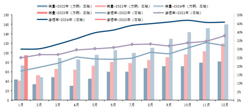 根据中国汽车工业协会数据,2024年中国新能源汽车产销均首次突破1000万辆,预计2025年销量将达到1650万辆,内需有望达到1500万辆,市场渗透率预计超过55%。