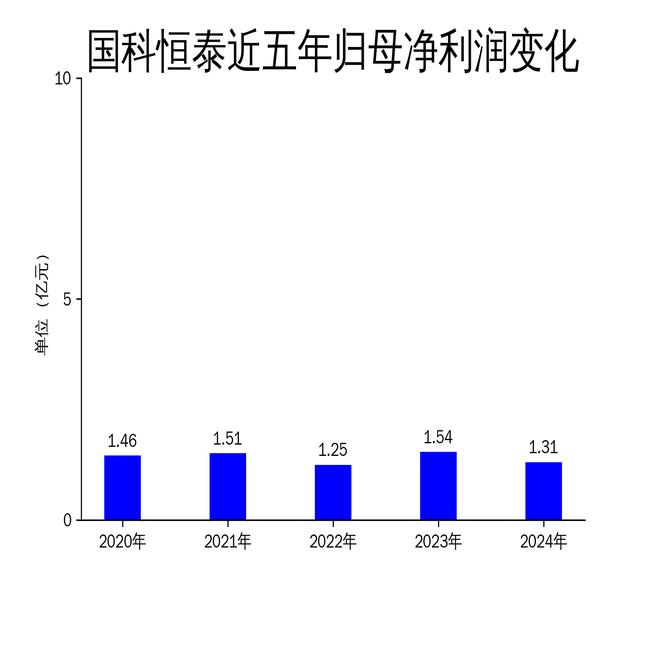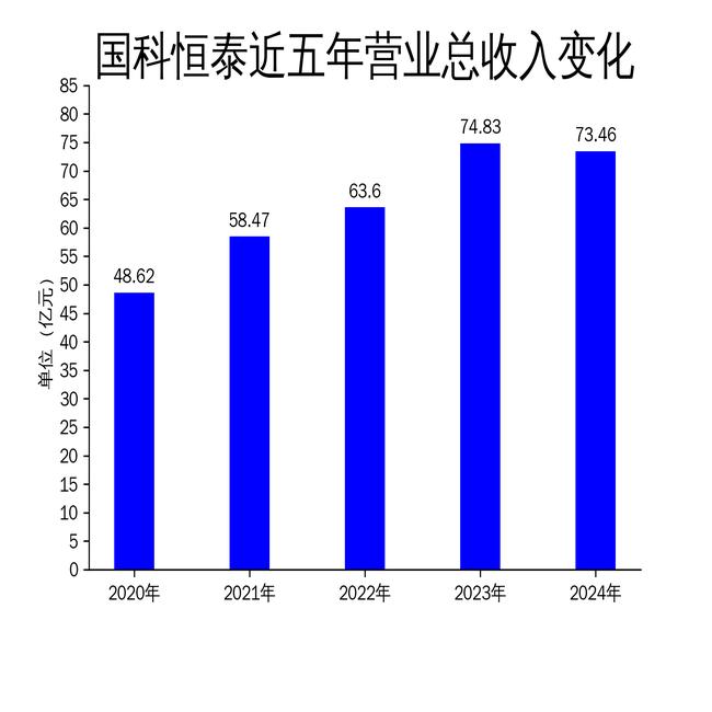 2024年,国科恒泰的营业总收入为73.46亿元,同比下降1.82%。这一下滑趋势在毛利润和净利润上表现得更为明显。毛利润从2023年的8.79亿元降至7.91亿元,归属净利润从1.54亿元降至1.31亿元,扣非净利润更是从1.49亿元大幅下滑至1.17亿元。这表明公司在收入端和利润端均面临较大挑战。