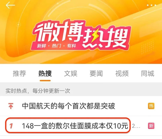 2022 年 9 月,“ 148 元一盒的敷尔佳面膜成本仅 10 元”的话题登上热搜。