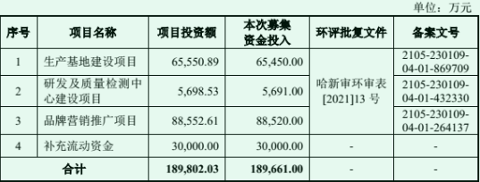 而且,敷尔佳这次的募资,品牌营销推广项目投入最大,达到8.852亿元,其次就是产地建设,达到6.545亿元,相对而言,研发及质检中心建设项目投入只有5691万元。