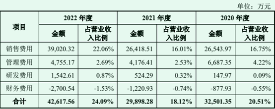 2020年至2022年,公司投入研发费用分别为147.97万元、524.29万元和1542.62万元,分别占营收比例为0.09%、0.32%和0.87%。