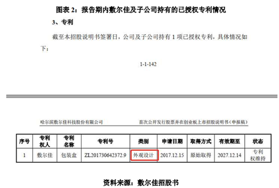 招股书显示,敷尔佳及其子公司共持有22项已授权专利,其中发明专利2项,实用新型专利4项,其余均为外观设计专利。