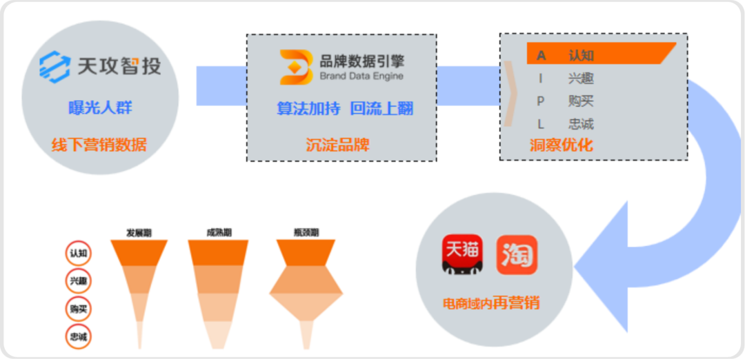 在此次营销中,敷尔佳通过瓴羊天攻智投,可将本次曝光潜客人群同步回流至线上品牌数据引擎中,通过数据沉淀,优选与品牌更匹配的户外投放点位与线上电商渠道,便可在电商域内再次营销。