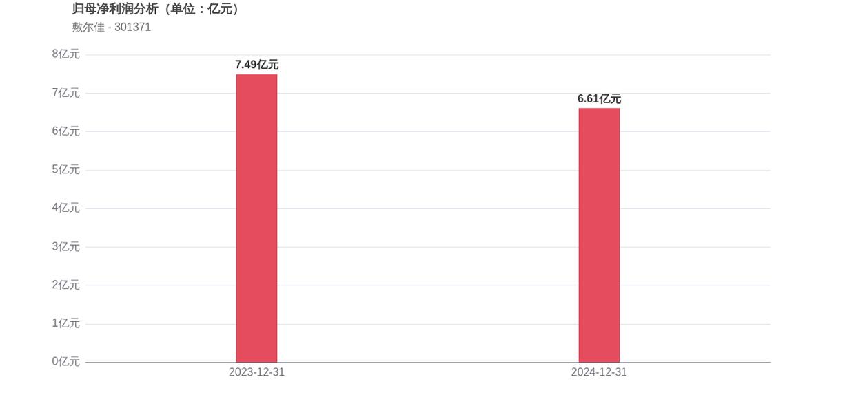 利润角度分析,2023年敷尔佳实现归母净利润7.49亿元,2024年6.61亿元。归母净利润连续两年出现下滑。