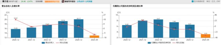 进入2025年,业绩颓势更加明显。第三季度报告显示,公司单季营收同比下滑17.58%,净利润同比暴跌44.96%,扣非净利润几近腰斩。