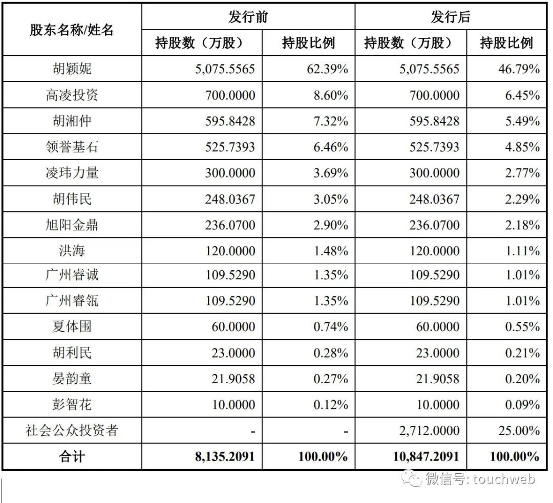 IPO后,胡颖妮、胡湘仲仍将共同控制公司61.5%股份对应的表决权。