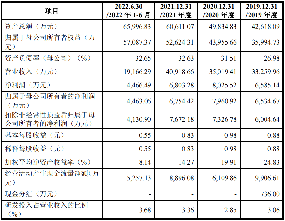 招股书显示,凌玮科技2019年2022年上半年实现营收分别为3.33亿元、3.50亿元、4.09亿元和1.92亿元;净利润分别为6585.14万元、8025.52万元、6803.28万元和4466.49万元,扣非净利润分别为6004.64万元、7326.78万元、7672.18万元和4130.90万元。报告期内,公司的综合毛利率分别为43.90%、37.22%、35.10%和37.54%。