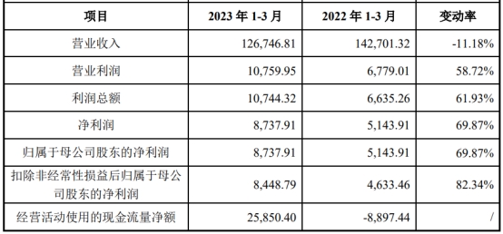 2023年1-3月,致欧科技营业收入为126,746.81万元,同比下降11.18%;净利润/归属于母公司股东的净利润为8,737.91万元,同比增长69.87%;经营活动使用的现金流量净额为25,850.40万元,上年同期为-8,897.44万元。
