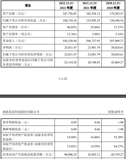 业绩来看,致欧科技营业收入2018年-2021年呈高速增长趋势,2022年出现下降,2023年一季度依然下滑;净利润在2018年至2020年呈快速增长趋势,2020年后整体呈下滑趋势,2022年净利润不及2020年。
