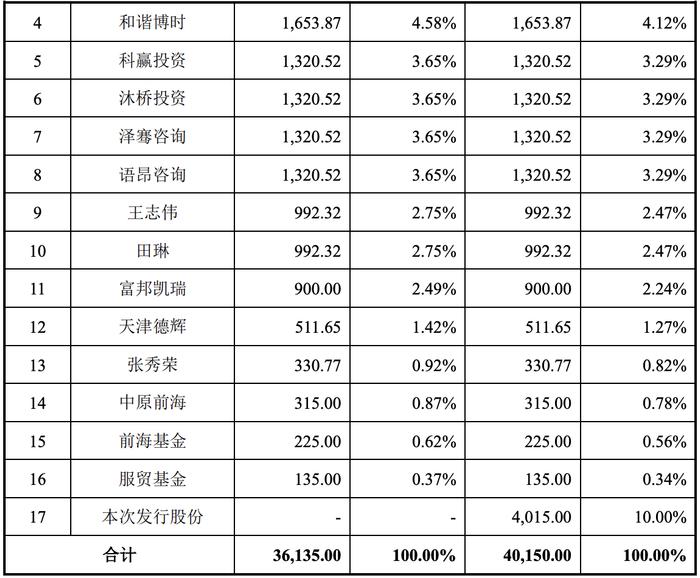 此外,安克创新持股9.15%,苏州宜仲持股4.69%,和谐博时持股4.58%,科赢投资、沐桥投资、泽骞咨询、语昂咨询均分别持股3.65%,王志伟、田琳均分别持股2.75%,富邦凯瑞持股2.49%,天津德辉持股1.42%。