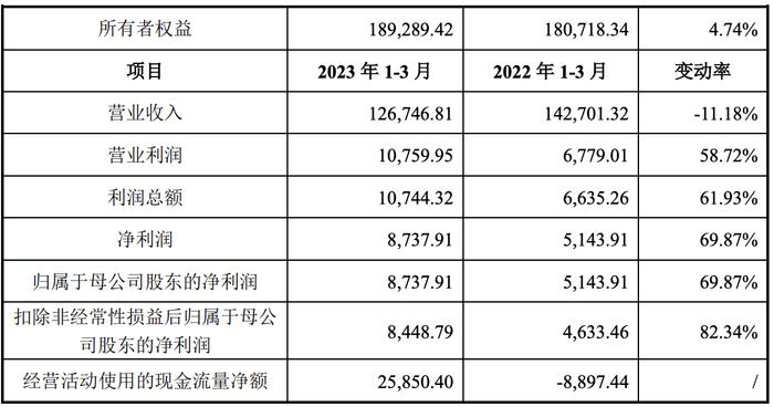 另据被财经了解,致欧科技在招股书中披露了2023年第一季度的财务数据等信息。2023年第一季度,该公司的营收12.67亿元,同比下降11.18%;净利润为8737.91万元,同比增长69.87%%;扣非后净利润8448.79万元,同比增长82.34%。