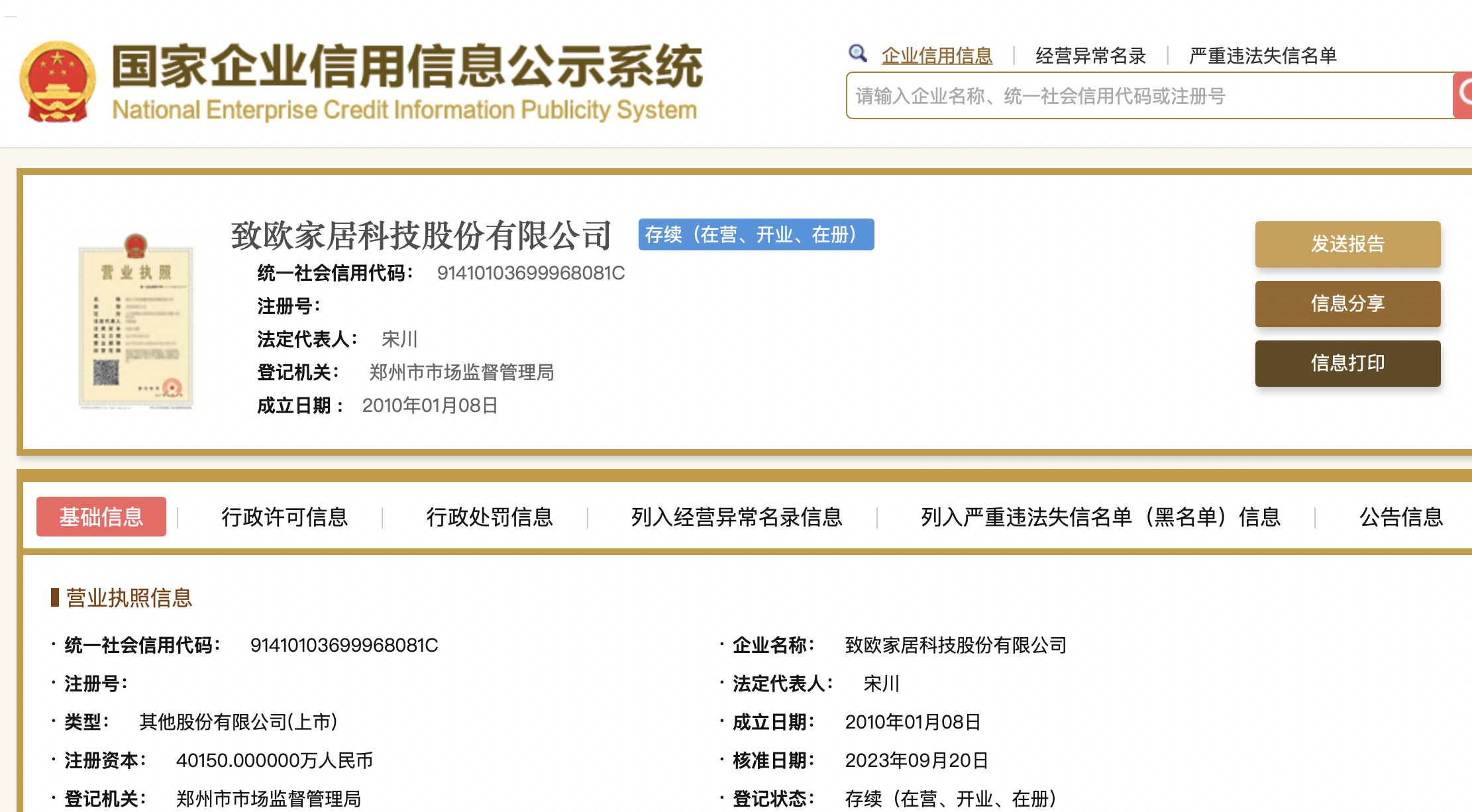 据乐居财经了解,致欧科技成立于2010年1月8日,注册资本约4.02亿元,法定代表人为宋川,经营范围包括:家居、家具产品的研发、设计、销售等。目前,其大股东为宋川,持股49.31%。