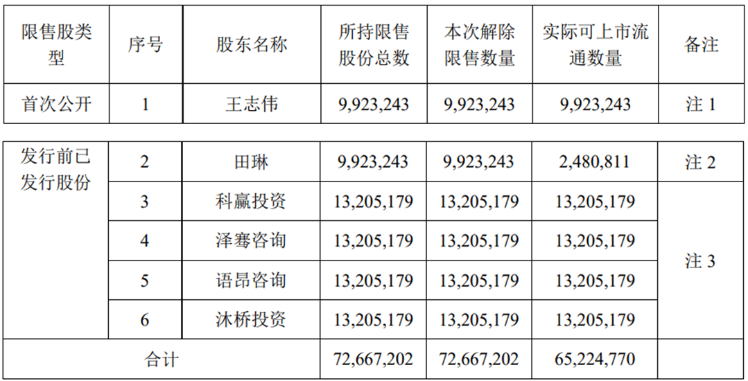 今日,致欧科技(301376.SZ)首次公开发行前已发行的72,667,202股股份解除限售,占公司总股本的18.10%。