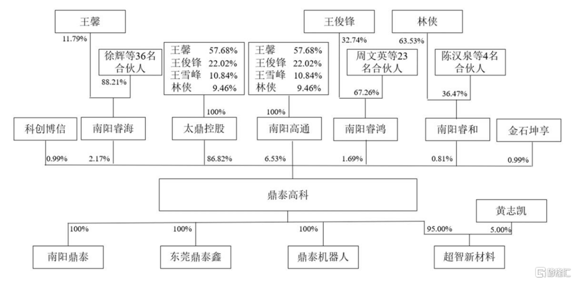 截至发行前,公司的控股股东为太鼎控股,持有公司312,552,000 股股份,占发行人股本总额的86.82%;实际控制人为王馨、林侠、王俊锋和王雪峰,四人共计直接或间接持有公司94.67%的股权。