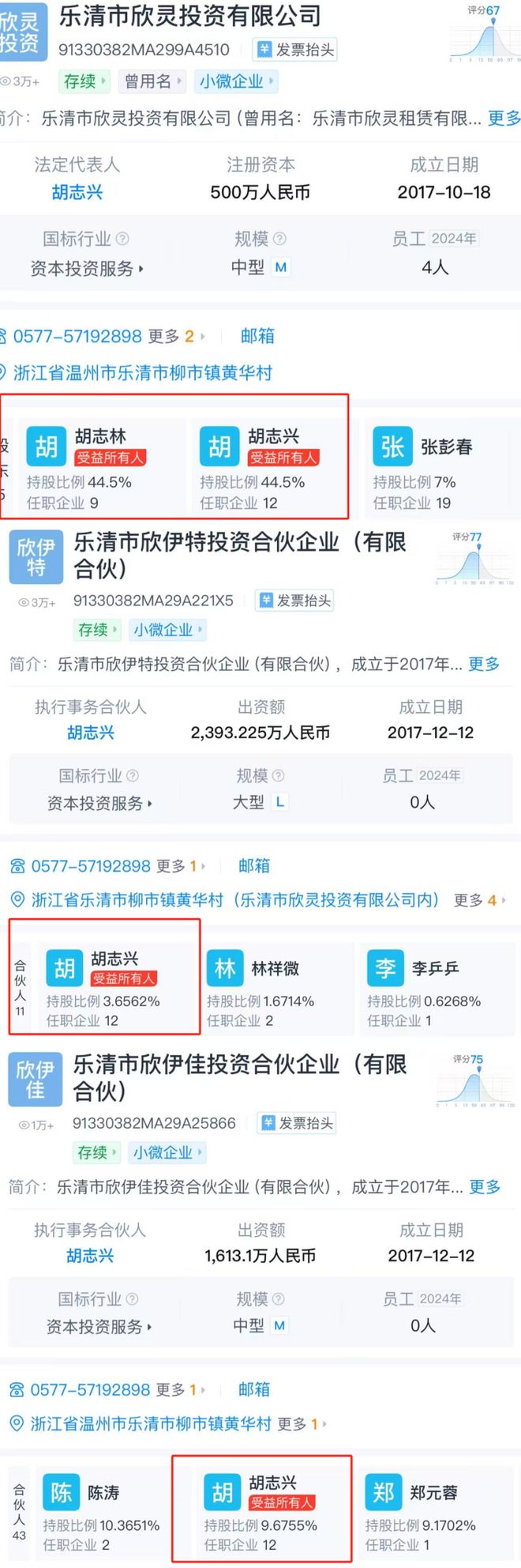 股东当中的乐清市欣灵投资有限公司、乐清市欣伊特投资合伙企业(有限合伙)、乐清市欣伊佳投资合伙企业(有限合伙)的控股及执行事务合伙人中也均出现了兄弟二人的身影。