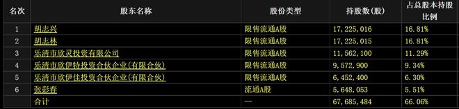 根据交易软件股东分析,目前欣灵电气的实控人为胡志兴、胡志林兄弟,其余股东还有公司总经理张彭春、乐清市欣灵投资有限公司、乐清市欣伊特投资合伙企业(有限合伙)、乐清市欣伊佳投资合伙企业(有限合伙)。