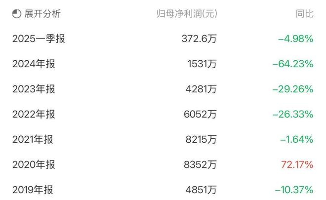 具体来看,2023年欣灵电气实现净利润4281万元,同比下降29.26%;2024年净利润1531万元,同比下降64.23%;2025年一季度净利润为372.6万元,同比下降4.98%。