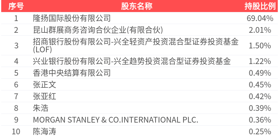 公司股东户数为2.01万户,前十大股东持股数量为2.16亿股,占总股本比例为76.12%,前十大股东持股情况如下: