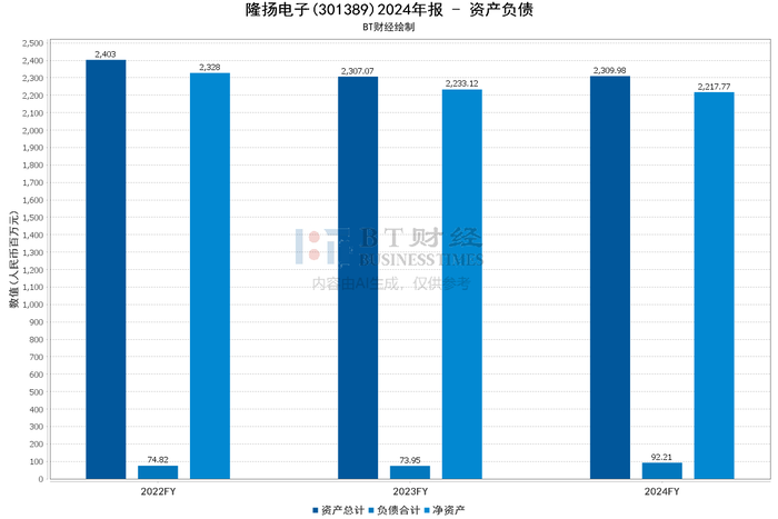 总体而言,隆扬电子2024年营业收入有所增长,反映出市场需求的逐步恢复,但净利润和现金流量均出现显著下降,表明公司在盈利能力和现金流管理方面面临挑战。资产总额略有增长,但净资产的下降可能影响公司的长期财务健康。公司未来需应对行业竞争,优化成本结构,合理安排投资和筹资活动,以实现企业持续稳定的高质量发展。