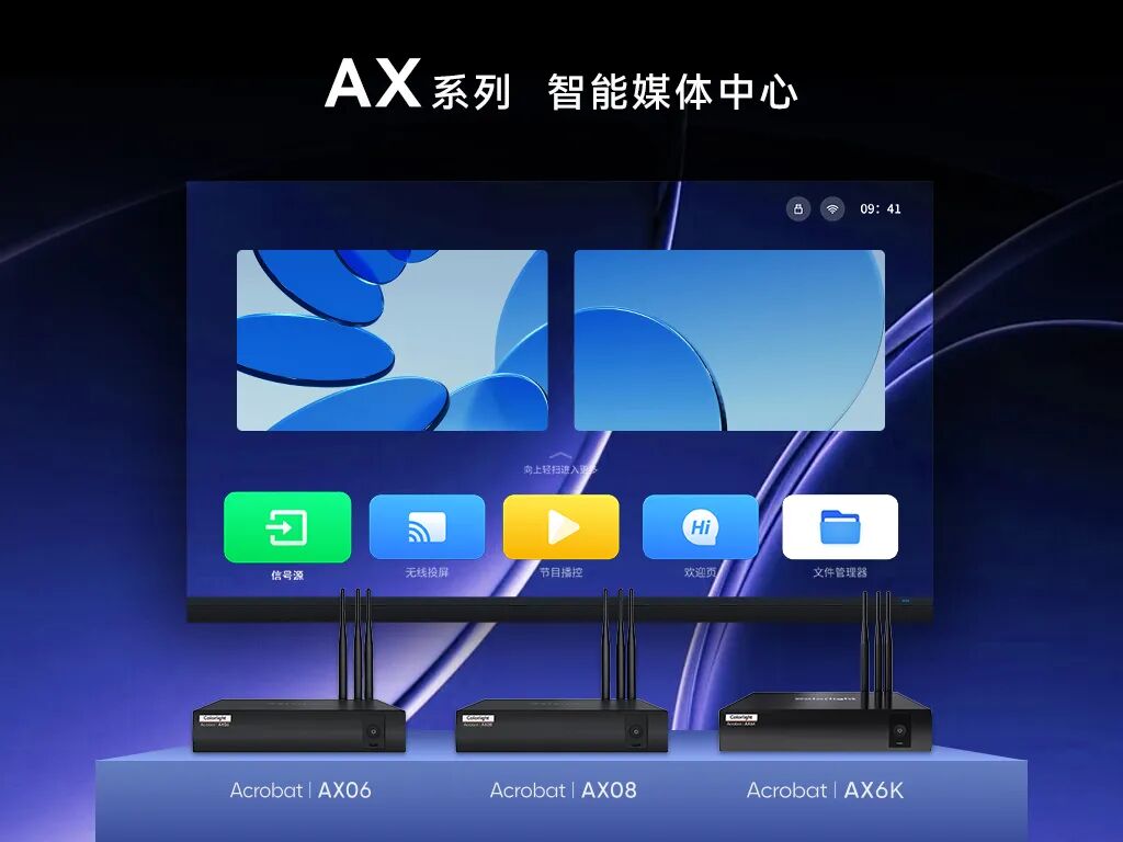 AX 系列智能媒体中心,集多种安卓应用和同异步发送功能为一体,具备强大的交互和播控能力,全新升级 Android 15 操作系统,强悍算力助力 AI 智能应用腾飞,解锁全新会议体验,Google / GMS EDLA 极速认证,实现全球应用生态无缝衔接。