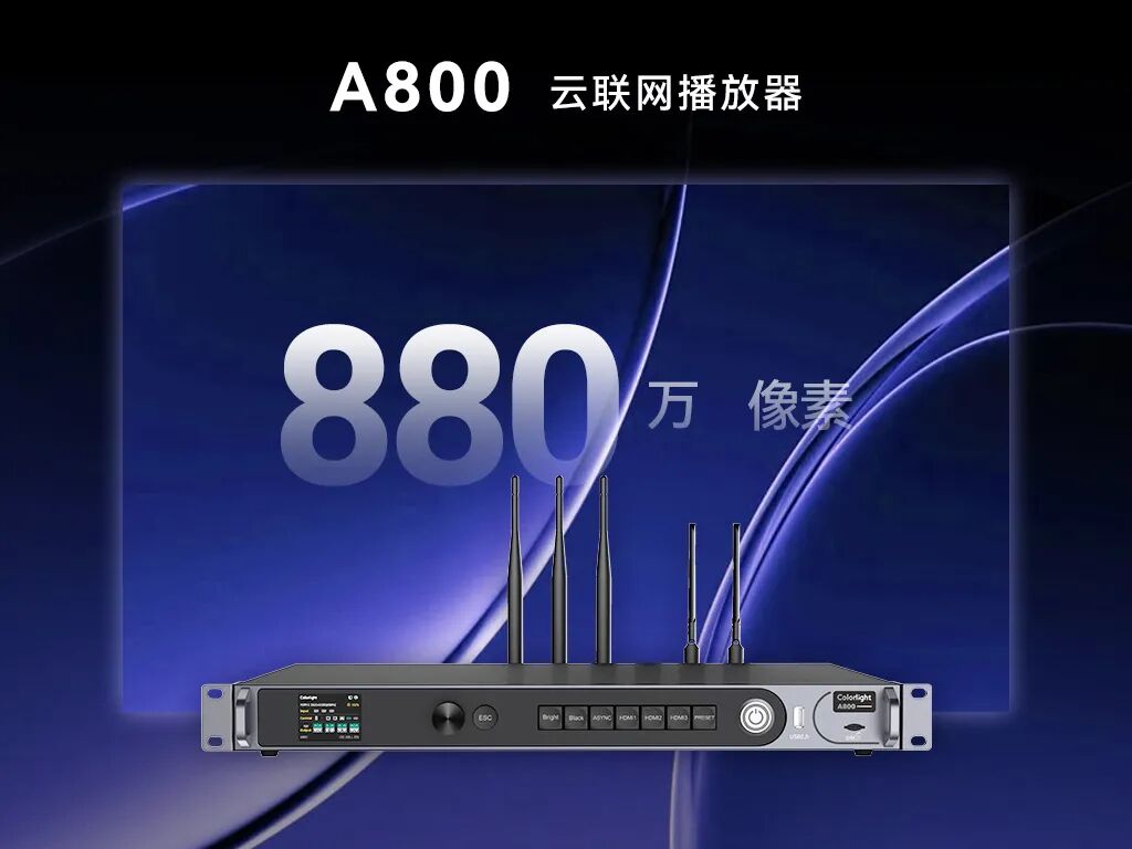 A 系列再添新成员 A800,拥有 16 网口与高达 880 万像素的带载能力,支持单机管控超大规模商显画面。配合 LEDMaster 云端远程监控系统,实现高效运维,重塑高端商显新体验。异步方面,支持 4G / 5G / LAN / Wi-Fi 接入 C-Cloud 信息发布平台,远程统一管理海量大屏,实现安全、可靠、便捷的信息发布。