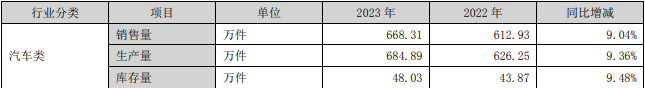 行业快速发展的加持下,星源卓镁进一步聚焦主业,旗下汽车应用产品“增利又增量”。年报数据显示,2023年,该公司汽车类产品营业收入达到3.07亿元,同比大幅增长45.15%;该类产品毛利率也达到32.15%,同比增长1.60%。同时,星源卓镁汽车类产品实现产销两旺的态势,生产量、销售量均有提升。