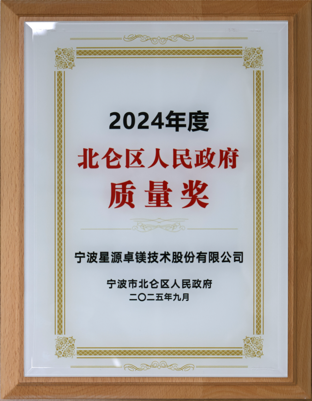 2025年9月30日,宁波经济技术开发区管委会、北仑区市场监管局领导一行莅临星源卓镁,为其颁发“2024年度北仑区人民政府质量奖”。这是区政府对公司整体经营管理水平和质量工作的高度认可,更是全体星源人共同努力的成果!