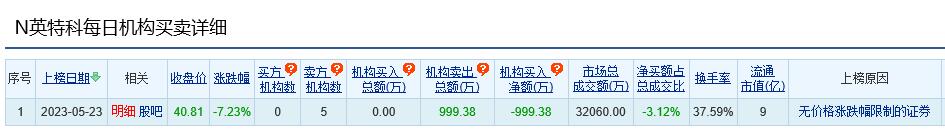 龙虎榜数据显示,卖出英特科技金额最大的前5名,均为机构专用席位。经统计,机构席位今日卖出英特科技净额为999.38万元。
