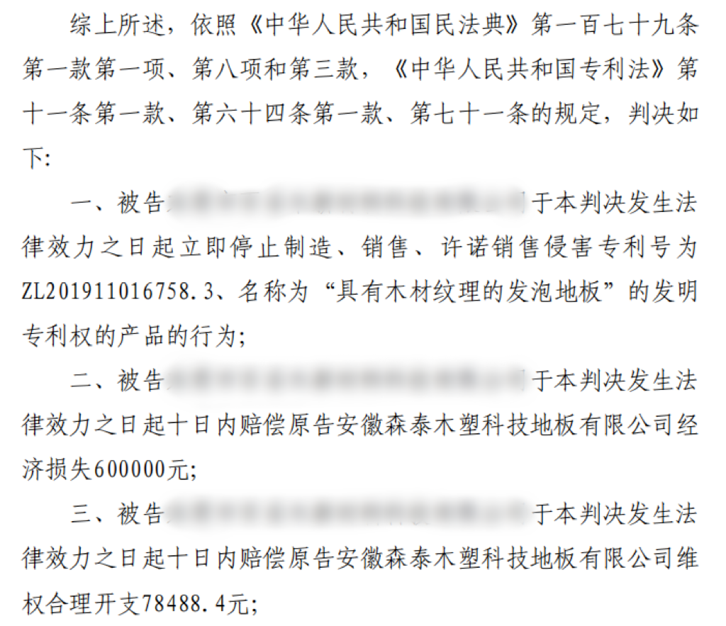近日,最高人民法院就安徽森泰木塑科技地板有限公司(以下简称:森泰股份)诉东莞某企业专利侵权纠纷案作出终审裁定,准许侵权方撤回上诉,一审判决正式生效。这场历时两年多的知识产权保卫战以森泰股份胜诉告终,彰显了司法对强化创新保护的决心。