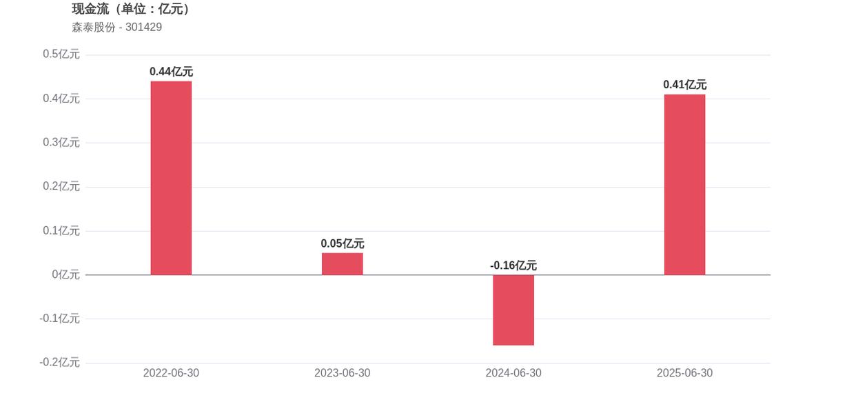 在经营稳健性方面,森泰股份面临存货管理压力,存货周转天数为141.75天,较2024年上半年增长了31.18%,表明存货周转效率有所下降。经营活动产生的现金流净额0.41亿元,相比2024年同期的-0.16亿元实现由负转正,经营现金流状况有所改善。此外,2025年上半年的资产负债率为22.48%,同比增长了4.85个百分点,这意味着公司负债水平有所上升。