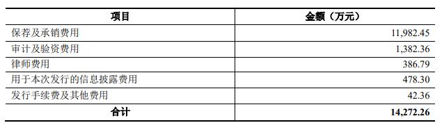 博盈特焊本次发行费用总额为14,272.26万元,其中保荐及承销费用11,982.45万元。